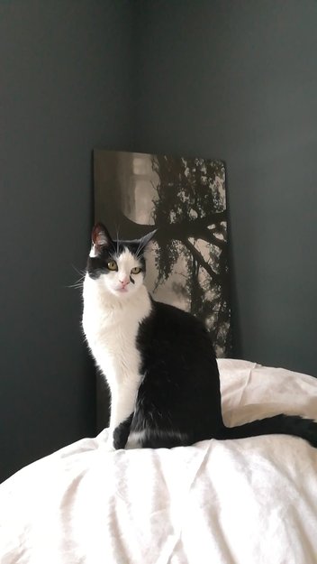 Sort og hvit. hunnkatt var savnet i Sande