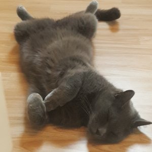 Veldig kosete hvis han først hilser på. Helt grå i pelsen, kjempe godog myk pels