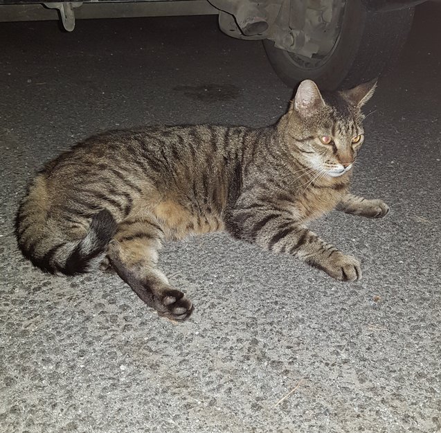 Stripete herrepus, mest sannsynlig ukastrert , har gått i nabolaget her i flere år.