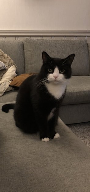 Svart, med hvite poter. Fremlabbene er kun hvite ved tuppen(fingertuppene) av potene.