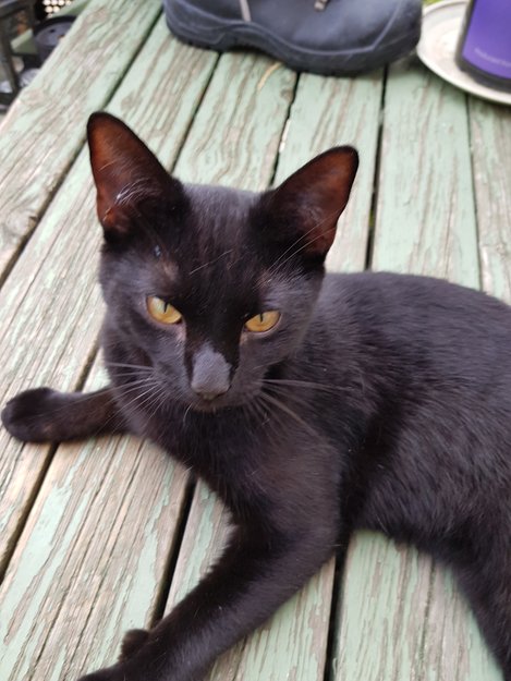 En ung hannkatt har slått seg ned på terrassen vår. Den er veldig sosial og kosete, så den har nok bare gått seg bort.