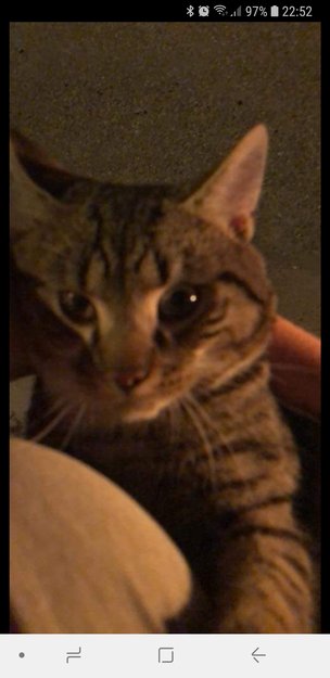 En person fant ham påkjørt utenfor innkjørsel. Tok han med til brumunddal dyreklinikk. Men når døra går opp ,spretter Lucifer ut og løper avsted.