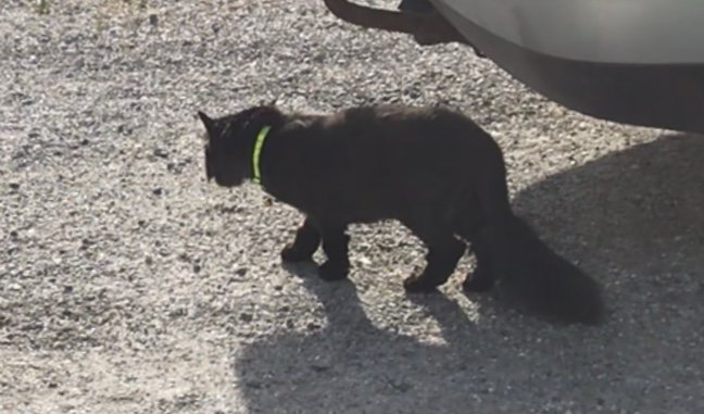 Har halvlang pels, fikk løveklipp i starten av mai, og pelsen har ikke rukket å vokse helt ut enda. Hadde samme halsbånd som på bildet da hun forsvant.