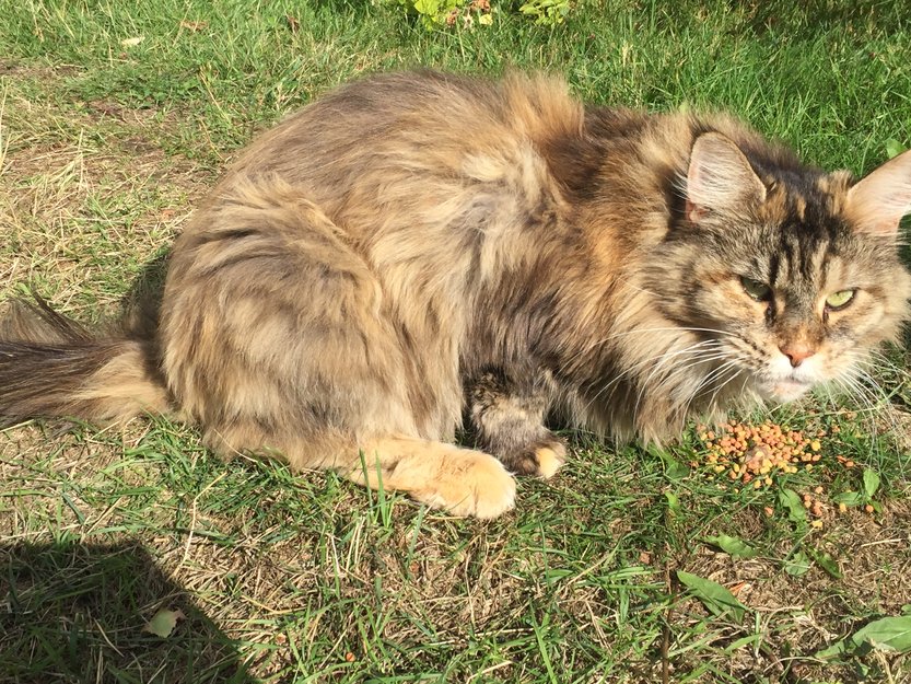 Ukjent langhåret katt som befinner seg på en gård på Drolsum. Utrolig kjælen og tillitsfull.