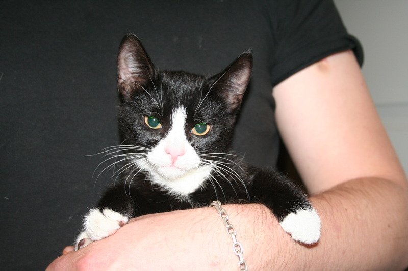 Liten svart med hvitt.