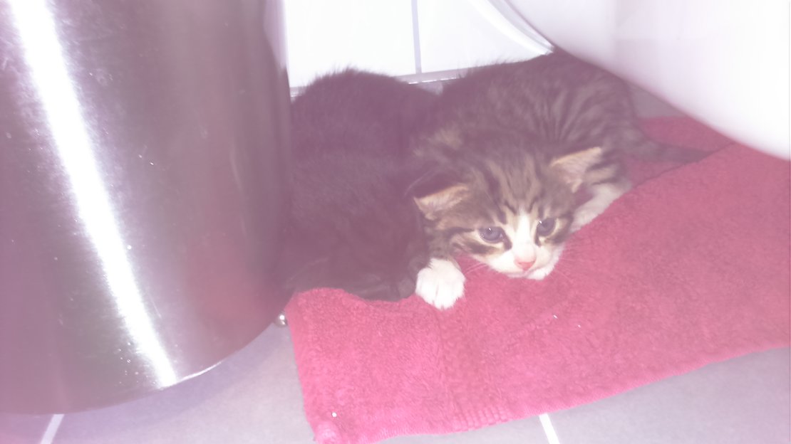 Har funnet to små kattunger. Tipper rundt 5 uker gamle. De virker ikke vant med mennesker. Fant de ute på en åker på siden av gangveien. Søkte etter kattemor men uten hell. Prøvde ringer på døra til gården men det var ingen hjemme. Skal prøve finne eier.