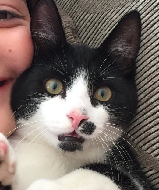 Slapp pusen ut og han ble nok jaget bort av vår andre, eldre katt.