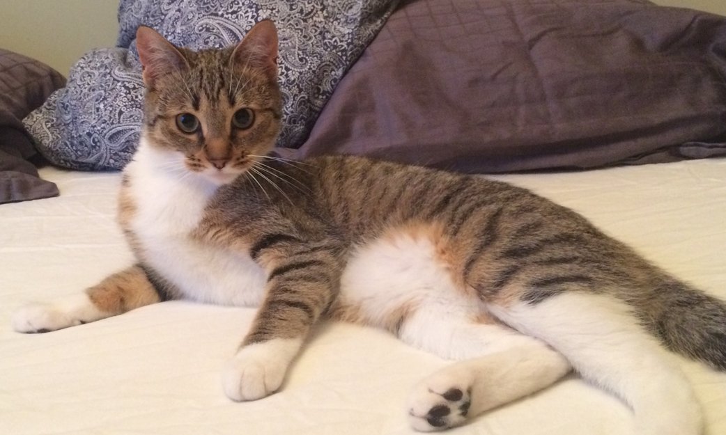 Pus er ikke så veldig stor av vekst. Hun er kun 11 måneder gammel, men ser ut som en fullvoksen katt.