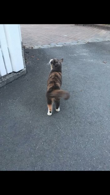 Tricolor katt har oppholdt seg en liten uke på Kystadhaugen. Ekstremt kontaktsøkende og har siste netter mjauet mye. Ble tatt inn idag 16/8/18, sliten og sulten. Meget snill og kos katt! Ikke chippet! Kjønn er usikkert. Dyrlege tror kastrert hann, men farger tilsier jente😊 Ser ung ut og er pr dags dato lettvekter. Muligens litt tynn.