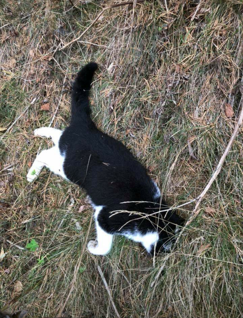 Funnet død ved de store støyvollene rundt boligområdet ut mot veien, i nærheten av Læringsverkstedet barnehageavdeling 😢 Katten er levert til Ullensaker dyreklinikk på Sand.
