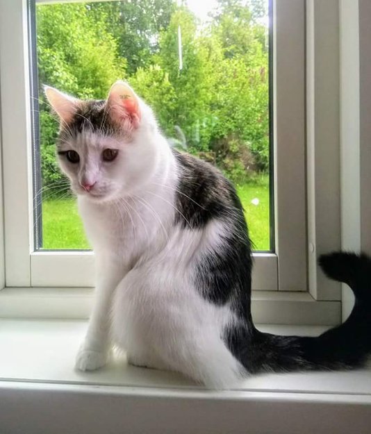 Pleier alltid å holde seg rundt huset da hun føler ansvar for vår ikke fult så begavede katt.