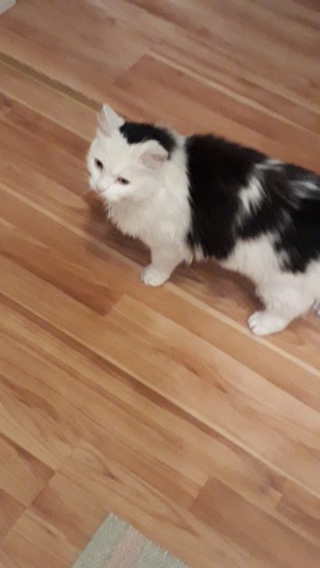 It has thumbs/extra toe on both front paws. Very affectionate.