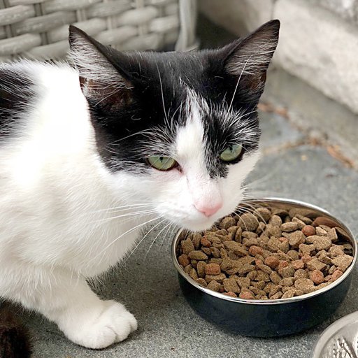 Katten er ikke fullvoksen, snill og pratsom. Hun virket veldig sulten da hun kom, og har fått mat og stell av oss. Fargemessig er hun hvit med svarte tegninger. Vi reiser snart utenlands snart og håper noen melder seg. Katten er ikke chippet.