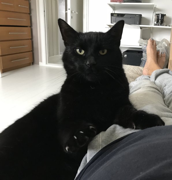 Har kommet seg ut på egenhånd og blitt skremt av hunder. Han er sort og har en del arr på kroppen etter påkjørsel. Er øremerket med tallet 10. Chippet men har nytt tlf enn det som er på chippen. 93215638 er mitt nr