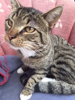 Katten hadde blitt lettere påkjørt, tatt med til dyrlege for røngten men ingen inder skader.Ble tatt inn av Dyrebeskyttelsen. Han var ikke chippet eller kastrert