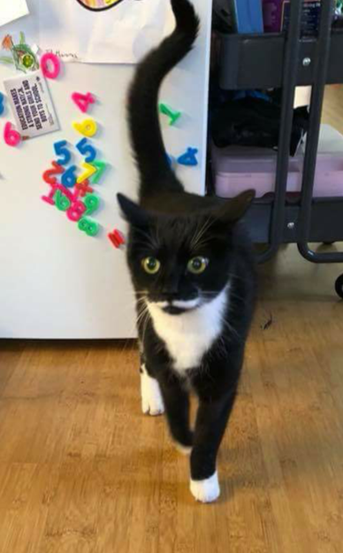Katten har vært observert i området en ukes tid, er veldig oppsøkende og prøver å gå inn til folk som har dørene sine åpne. Har den siste tiden oppholdt seg mye hos noen som bor i St. Halvars gate hvor katten har funnet sin plass i hagen og sover i utesofaen. Katten er id-merket med chipp, men katten ble omplassert for noen år siden og tidligere eier har ikke informasjon om ny eier. Katten er nå tatt inn i påvente av å finne nåværende eier.