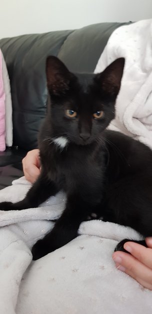 Gikk en liten kveldstur i går(2.9) rundt 0030. Da møtte jeg en liten svart katt på ca 3-4mnd. Katten vår tydelig glad for å se mennesker,så den fulgte meg tilbake til huset vårt. Hele natta har den stått å skreket og mjauet utfor. Så i morrest tok vi den inn og fikk gitt den litt mat og vann. Den var veldig sulten og tørst. Katten er fortsatt inne og veldig koste.