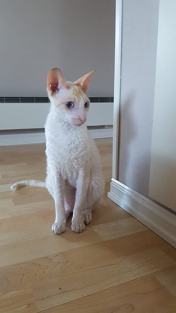 Katten er rasekatt av orientalsk type. Ser ut som en cornich rex. Den er veldig sosial og leken