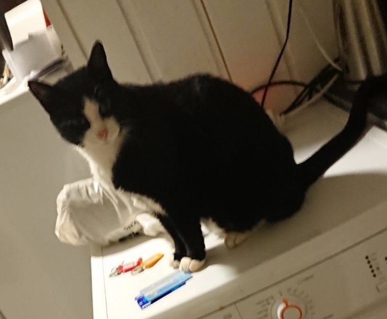 Har en distingt kul mellom skulderblada som er id chippen. Skeptisk men snill.