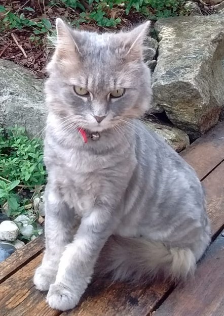 Hun har et rødt halsbånd på seg (hvis hun ikke har mistet det) merket med "Roxsi" og et telefonnummer. Hun er 11 år og har lagt på seg og har fått mer pels på seg siden bildet ble tatt.