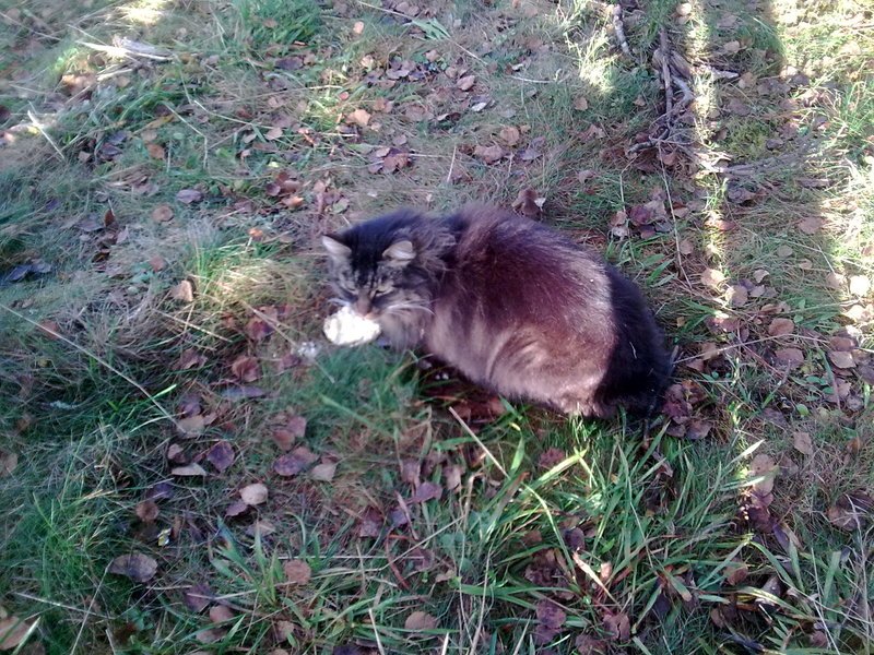 En katteeier som savnet en lignende katt, så min annonse og lette etter den ved Estenstadhytta. Hun skrev til meg: "Da pratet jeg med de som jobber på hytta og de sa at en akkurat lik katt hadde gått rundt hytta en stund, men at den hadde blitt hentet av eieren sin." Katten jeg observerte er dermed blitt funnet og hentet, men hun som kontaktet meg leter fremdeles etter sin lignende katt, som forsvant nær Heimdal: http://www.dyrebar.no/7705