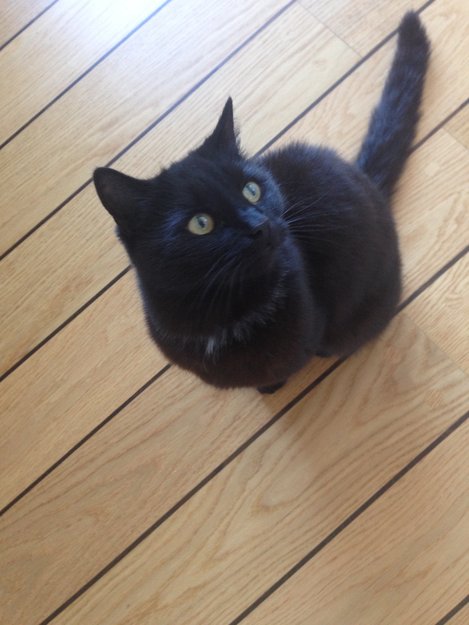 Nesten helt svart, Litt hvite hår rundt halsen/nakken( der hun har hatt halsbåndet).