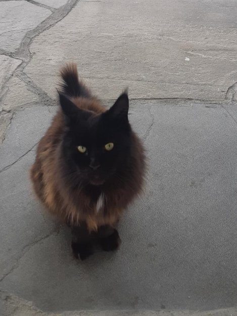 Dukket opp den 22 september. Veldig sulten, kontaktsøkende og snill. Er ikke chipet. Dette er en hunkatt. Tydelige "dusker" i ørene, muligens skogskattblanding.