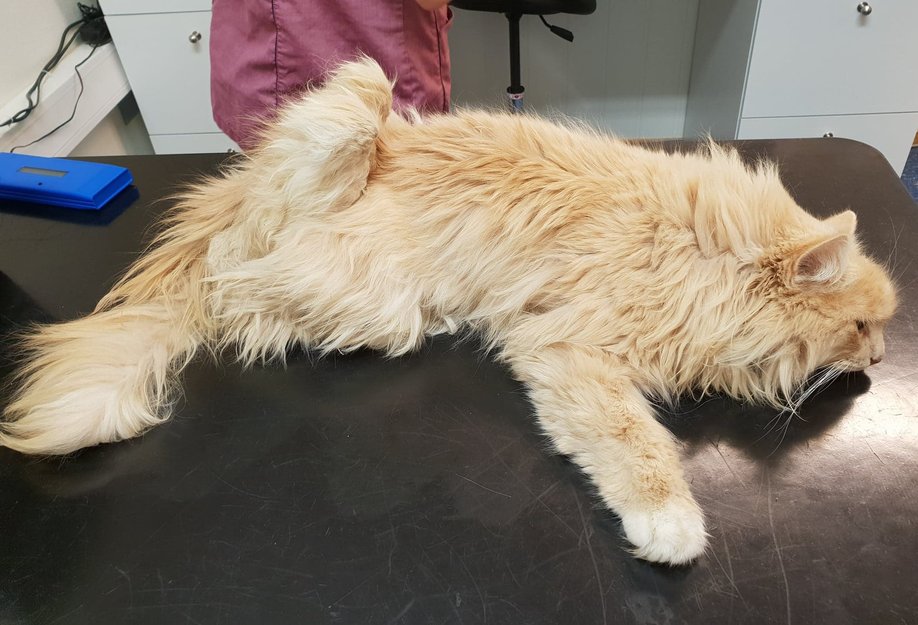 Katten veier 4.2 kg langhåret kastrert gutt. Virket ikke veldig gammel ca 2 -3 år?