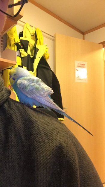 Det har dukket opp en blå og hvit undulat(tror jeg) på en av våre byggeplasser. Den er veldig tam