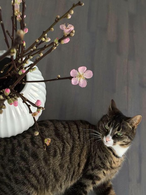 Hun er tigerstripet grå, hvit, sort og beige. Mørk flekk på sin lyse snute og mørk flekk under ene fram poten. M i pannen og hvit under halsen. Har også en hvit strek på nesebeinet. Hun kan være litt nervøs av seg og er også litt lang i ryggen.