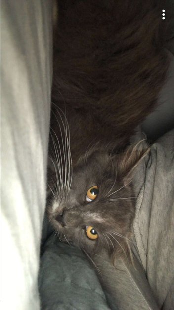 Han er i hovedsak grå, med hvite labber, buk og noen flekker. Han har en hvit flekk ved siden av nesen og i pannen, og en litt mindre synlig på ryggen/siden. Han er veldig snill, men redd og skeptisk på ukjente personer. Blir tryggere med en gang han kommer opp på et fang. Biter og klorer aldri med mindre han leker. Han er som sagt en veldig nervøs pus, og trenger nok litt godsnakk for å roe seg og bli trygg på deg.