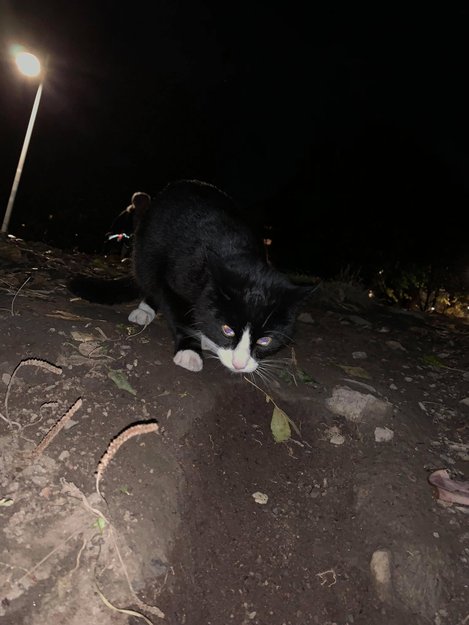 Fant vi en sort katt med hvitt i ansikt, hvitt på alle poter.