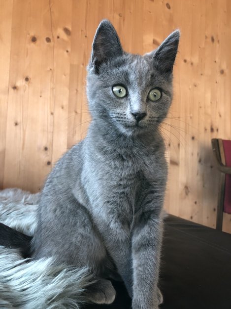 Hun er 5 mnd gammel med kort grå pels og grønne øyne. Da hun ble borte hadde hun på seg en rød, tynn sele.