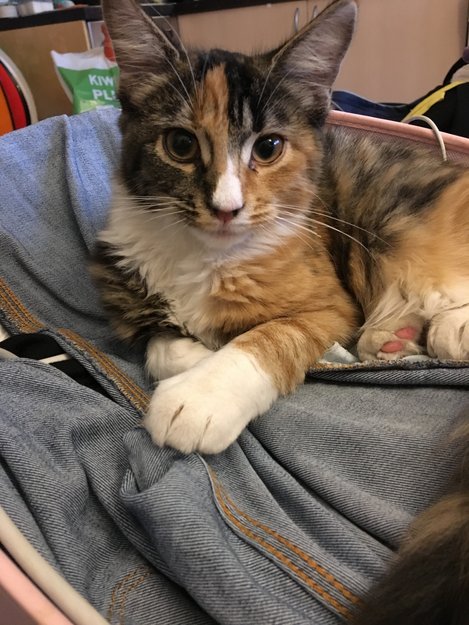 Ble kontaktet av en dame utenfor blokka i går om en katt som ikke ville la henne være og bare sto og mjauet til henne. Tok med katten inn for å se om jeg fant ut av hvor den hørte til, men finner ikke ut noe. Vil bare ligge på fanget og få kos mens den maler og fotfølger meg hvorenn jeg går. Veldig liten av vekst (ca 2 kg) og klønete, så tror den er veldig ung. Ikke normal oppførsel for en utekatt sa vet. Ikke chip. Bærer ikke noe preg av å ha vært lenge ute utenom at den var ekstremt sulten og tørst.