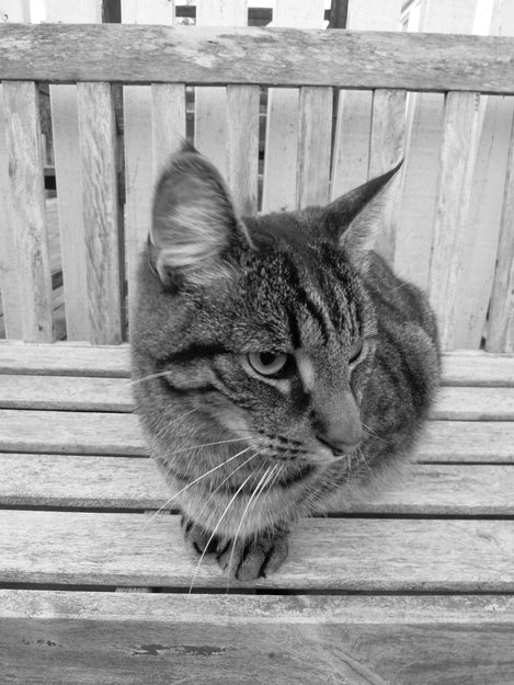 7 år gammal kastrert hannkatt - chippa - nesten utviska grønntatovering innside av øre -