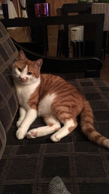 Rød bart. Tigerstripet rød. Stor og vennlig katt.