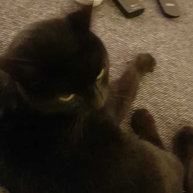 Hun er nokså liten av seg til å være 6 år gammel.navnet er Akira hun er blank i pelsen sin og veldig kosete.sort pels med litt hvitt forran på brystet.glad i tunfisk og yoghurt hvis du trenger å lure henne til deg med noe for å fange henne.