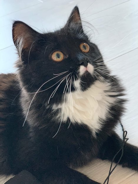 Hvit mustasje. Hvit «hals». Hvite poter.