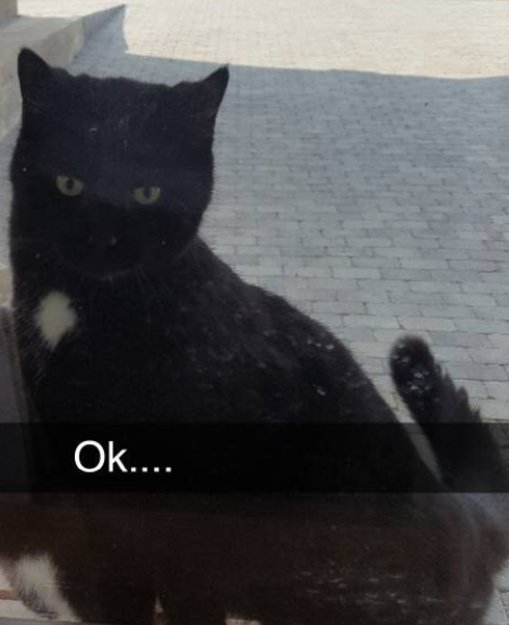 Svart med hvit flekk på brystet. Kan nok være ganske redd for fremmede.