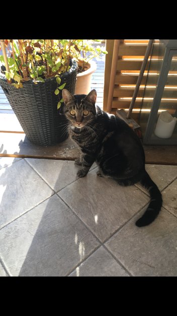Tassen gikk ut fre 9 nov om morgen og siden har han vært borte. Han er en stor gutt på 7 kg. Han er chippet og kastrert. Han hadde et rødt halsbånd på seg med navn og adr. Han er litt tigerstripet med mye sort bak. En hvit flekk på brystet. Han er blitt barbert på hver side av overkroppen siden han har hatt mye floker. Han er ikke så kjent i området, da han bare har bodd her i en mnd. Tassen er 7 år gammel.
