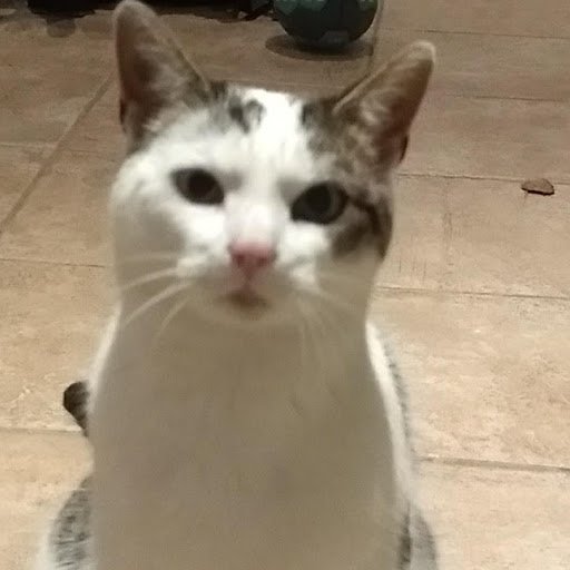 En hvit og grå katt befinner seg her på Venås. Send sms dersom dette er din katt.