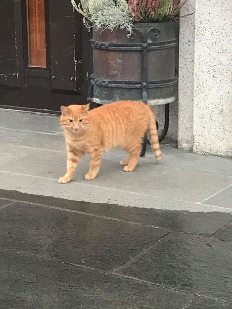 Den liker seg i sentrum, gjerne i området rundt Vekselbanken. Har gått der lenge. Ikke kastrert, sosial. Noen som kjenner den?