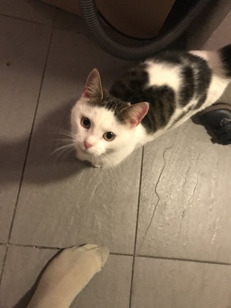 Funnet en katt som ikke vil gå bort fra vår dør. Står og uler, har tatt den inn til oss i varmen. Trenger hjelp til å finne eieren.