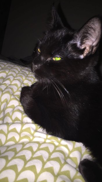 Blunka er helt svart, med to-tre hvite hår på brystet. Han er ganske menneskesky, og holder seg borte fra mennesker han ikke kjenner. Han har tatovering i øret (ID) men denne synes ikke så veldig godt.