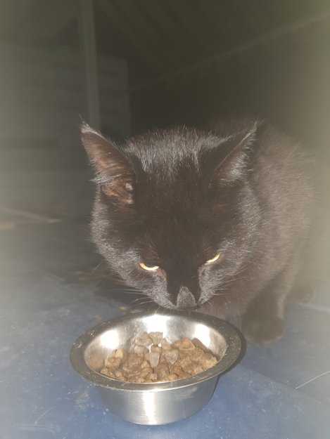 Har fått hyppig besøk av en helsort kattepus. Har bodd her selv i 2 år, så kjenner de fleste dyrene i området. Er ikke sikker på om katten er savnet, tilflyttet, etterlatt eller om den prøver å komme seg hjem til en evt. Tidligere adresse. Siden den er ofte på besøk og jeg selv har 2 innekatter, tør jeg ikke slippe den inn. Men det at den er på besøk hos meg så ofte, lurer jeg på om den kan ha gått seg bort. Katten er etter hva jeg kan se helt sort. Ingen synlige hvite hårstrå i pelsen, har gule øyne og har nummer tattoo i venstre øre. Har prøvd og ta bilde, men det ble ikke veldig bra.