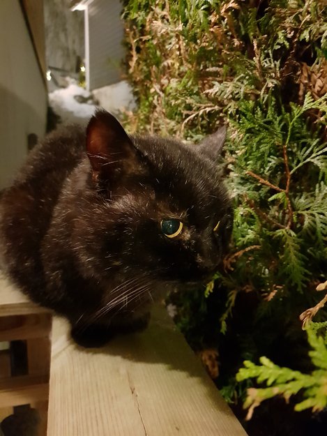Går en katt utenfor og vil inn. Men kan ikke ta den inn pga 4 katter og 1 hund som bor her. Den vekker oss og skriker masse pga den vil inn til oss. Men ser den aldri på dagtid, så mulig den har ett hjem og vil til oss på natten