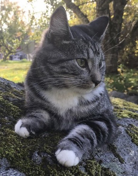 Katten kom hjem av seg selv. Sto på døra i dag tidlig. Hun er i fin form.❤️