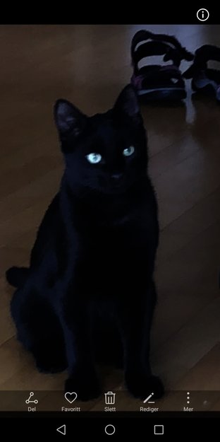 Sigurd er helt sort, med gul/grønne øyne. Han er under et år, smal.