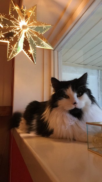 Katten min Teo , kom helt ut av det blå ruslende hjem igjen