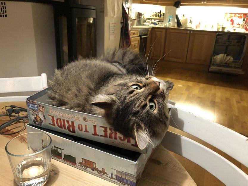 Han er en sibirsk katt. Veldig kjælen og maler lett.
